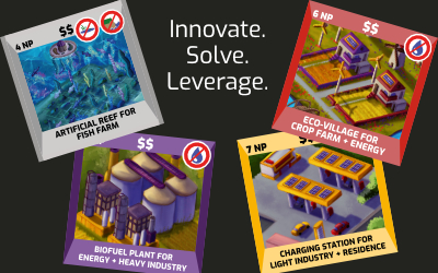 There is one winner, but the quality of the victory is determined by different factors. Will you win big? Or will you win smart? Every round, you must negotiate and strike deals to build new infrastructure and develop the land. Push too hard for personal gain and you risk limiting your own growth. If one sector collapses, the city collapses, and everyone suffers. If environment collapses, everyone suffers too. Balance economics with ecology – replant forests, restore bodies of water, and conserve biodiversity while building your economic engine. Pactopolis delivers intense table talk, meaningful trade-offs, and high replayability for players who love interaction-driven games.